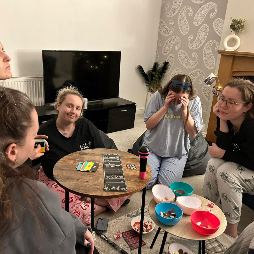 After dinner, we cozied up in the living room for some games: The Traitors Card Game and my personal favourite, Grab the Mic (with Taylor Swift absolutely stealing the show).