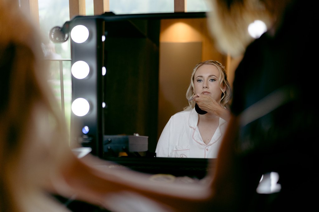 After quickly getting over the moody mountain weather, my hair and makeup team arrived. I was quite nervous about this part as it felt a bit odd getting all glammed up to walk into a field like a bridal woodland creature. Ultimately, I needed to look somewhat okay so for the photos that my mom will inevitably frame in her hallway.