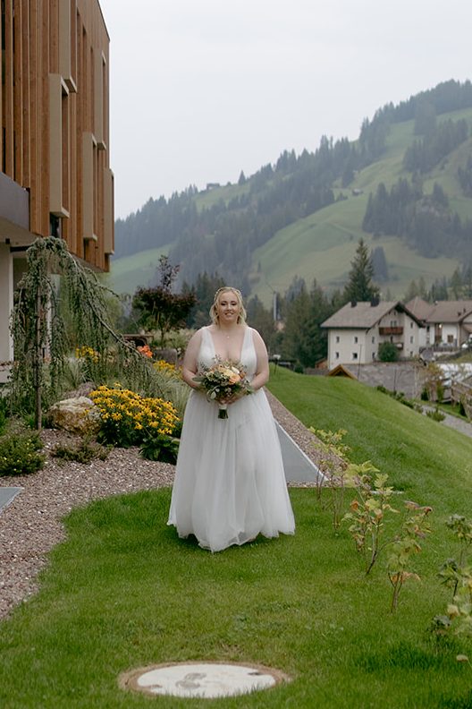 After spending the past week road-tripping through France, Switzerland, Austria, and Italy – soaking up the sun and basking in 28-degree heat, we opened the curtains of our panoramic suite that morning, expecting golden light and mountain views… and instead, were greeted by a wall of solid grey. Now, I knew the weather could be unpredictable – this isn’t my first rodeo (I’ve survived British summers, after all). But, if we’d gotten married just one day earlier or one day later, I would not be writing this blog post right now. That’s what I get for not believing in the curse of the 13th… lesson learned!